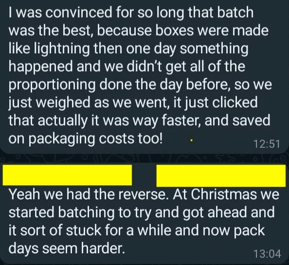 Packing veg boxes is a science. Done correctly a very small team can pack hundreds of boxes in a day.